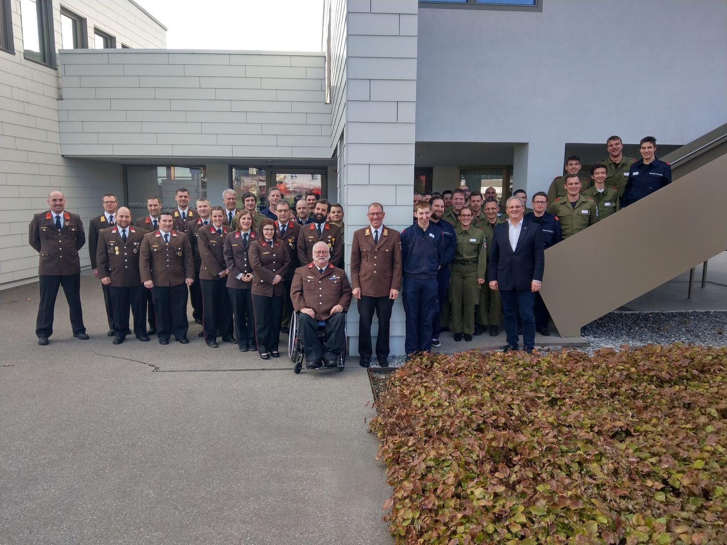 22 Feuerwehrleute haben die Prüfung erfolgreich bestanden und konnten nach einem fordernden Arbeitstag das begehrte Funkleistungsabzeichen in Bronze von Landesfeuerwehrinspektor Hubert Vetter und Landtagspräsident Mag. Harald Sonderegger in Empfang nehmen. Auch Bezirksfeuerwehrinspektor Christoph Feuerstein und Bezirksvertreter Markus Süß gratulierten den erfolgreichen Teilnehmer/innen.